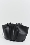 Grand sac en imitation cuir avec doubles poignées. Le sac est beige et a boucle dorée. Il a fermeture aimantée et compartiment intérieur.